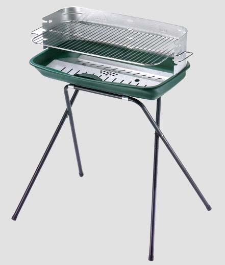 in acciaio verniciato – griglia di cottura in acciaio cromato regolabile in 4 posizioni – paravento in acciaio alluminato con innesto di sicurezza e bordo antigraffio – braciere in acciaio alluminato – gambe a cavalletto con innesto a baionetta – griglia cm 60×36 – altezza cm 80 – peso kg.8,5