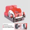 dimensioni macchina: 380x180x110 h mm – barra saldante: 330 mm – peso: 3,2 kg – struttura: ABS – pompa: – autolubrificante 16 lt/min – tensione: 230 V – saldatura: elettronica digitale preimpostata – sistema temporizzazione/ raffreddamento automatico – rientro aria: con valvola – pannello di controllo: display digitale, 2 led – avvio ciclo: digitale – vuoto in: buste, contenitori, barattoli
