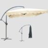 ombrellone girevole 360° in legno esotico – telo poliestere 245 gr/mq, con flange, color kaki – rinforzi in pelle – finitura champagne – antivento – palo quadro mm.70×70 – 8 stecche sez.mm.17×35 – porta base (base non inclusa)