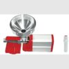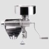 corpo e vite in ghisa trattata con polveri epossidiche – parti in acciaio inox 18/8 – imbuto e scivolo moplen – morsetto di fissaggio a vite ideale anche per marmellate