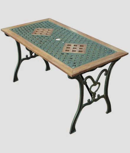 TAVOLO IN GHISA CON INSERTO IN LEGNO