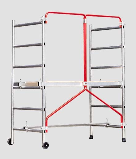 art.2400/110 – trabattello in alluminio pieghevole uso domestico – H max di lavoro 2,80 mt – ingombro mt 1,48×0,80 – piano di lavoro mt 1,22×0,50 – Ø ruote mm.100 – portata max 150 kg